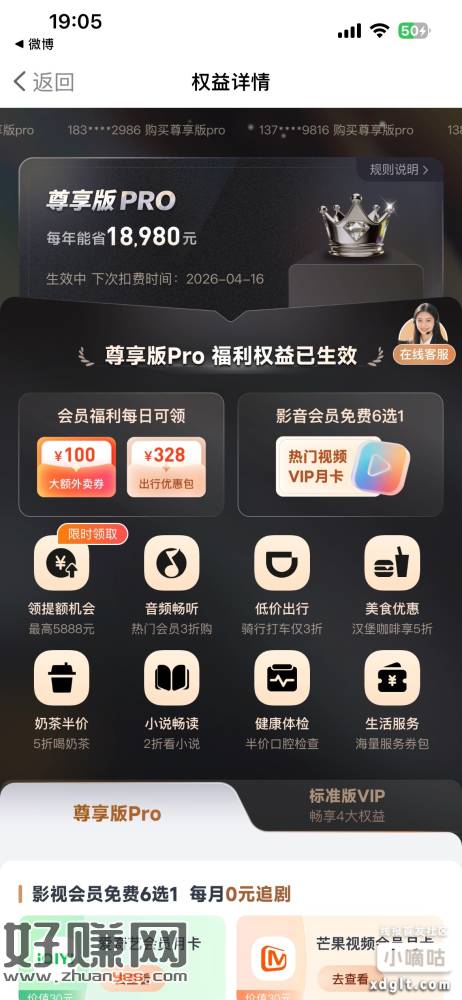 微博借钱我替你们先探探路,已经绑了一张不怎么用且没钱的银行卡,这里显示是下个月十几号才开始扣钱,但是服务可以先享受。视频会员可以输入手机号充着卖,可接单变现