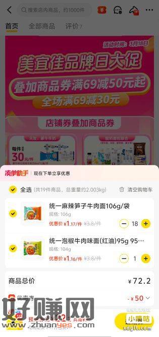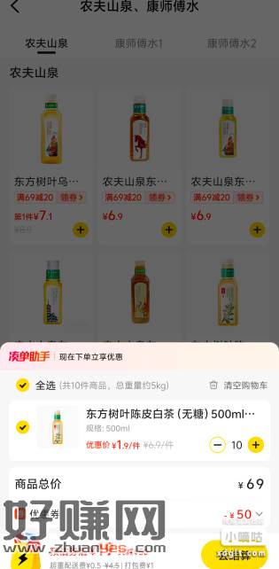 美宜佳先把顶部的69-30劵领了然后再点下面商品叠加卷,你想买哪个品类点进去就直接买,最后点69-20的这样配合起来就是69-50了