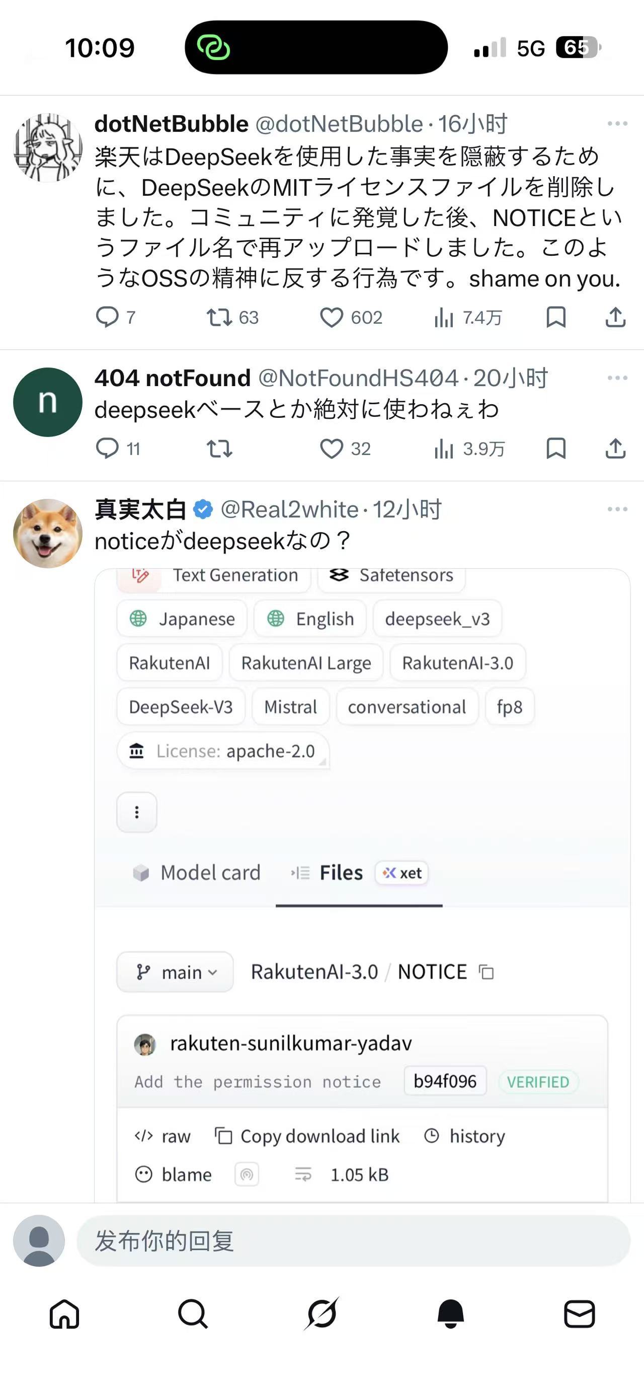 有日本博主表示:真正可耻的不是用了别人的模型,而是把这件事说得含含糊糊。如果楽天一开始就说"日本目前还没有从零构建基础模型的条件,所以我们基于DeepSeek做日语优化",这不但不会炎上(指引发大量负面新闻),反而会被视为务实的开发策略。