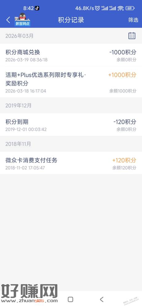 之前买100活期+的1000积分到账了,领福利里还有一个买10元给500积分的也可以做一下