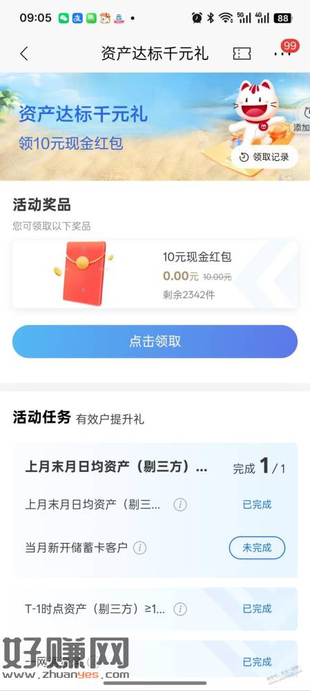 上月没1000,入金到1000,次日领10元。限 中山江门招行。