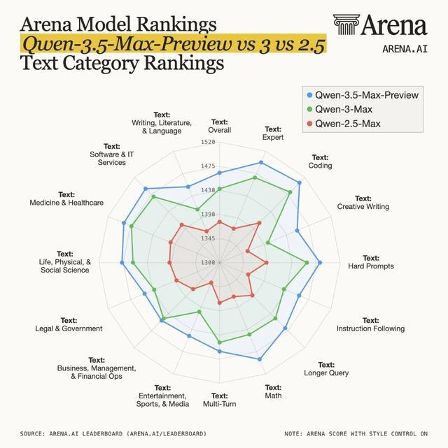 IT之家 3 月 20 日消息,阿里千问大模型家族再迎新成员。今日,Qwen3.5-Max-Preview 作为千问 3.5 系列的旗舰模型预览版,在全球大模型竞技平台 LM Arena 正式亮相,并获得 1464 分的综合得分。