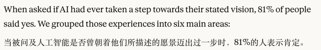 在报告中,当Anthropic追问:AI否曾朝着他们所描述的愿景迈出过一步时,81%的人表示肯定。