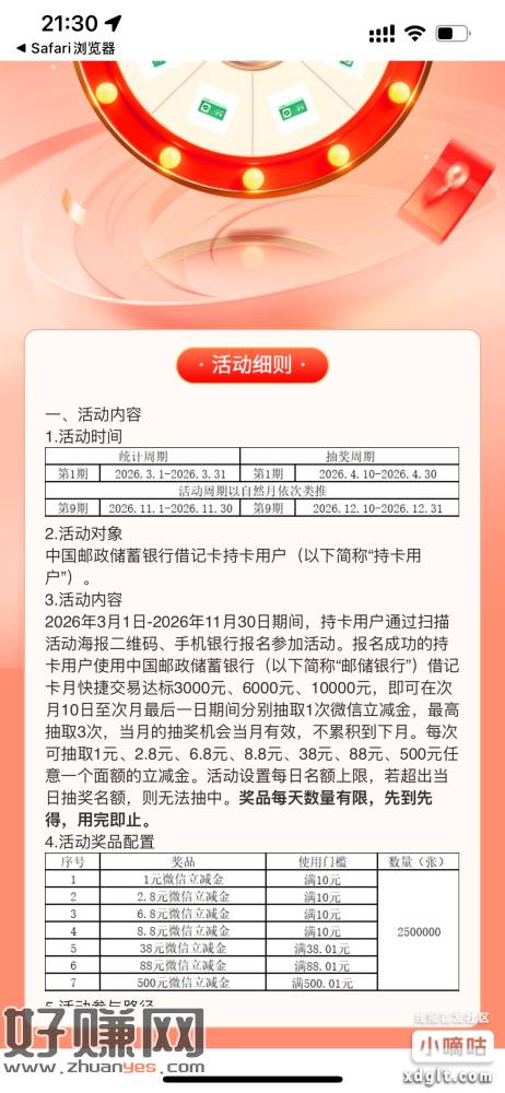 https://wap.psbc.com/wxbank/h5/r ... 9907072&urlTypeNo=3,邮储次月10号抽奖