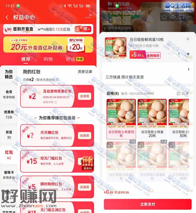 亲测0.86撸10个鸡蛋 京东领红包即可