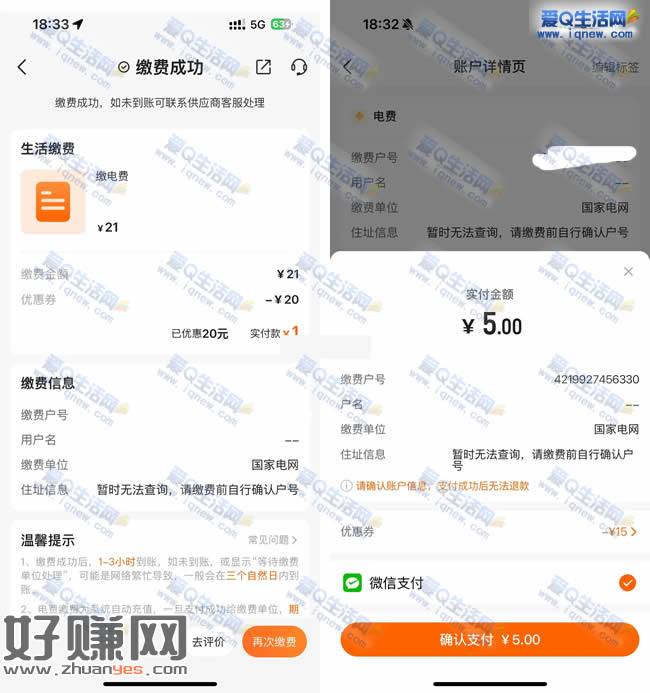 群友反馈 领了3张电费券 然后去缴费电费 立减