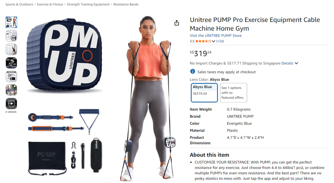 而宇树科技真正在海外“爆单”,则靠的是与机器人关联并不大的健身泵。2023年2月,宇树科技开始在亚马逊美国站销售“PUMP健身泵”,至今也是亚马逊上的主力产品。上线第一个月就销售数十万美元,受到了全球海外消费者的广泛赞誉。时至今日,亚马逊日本站上宇树的PUMP健身泵仍占据运动品类榜首。