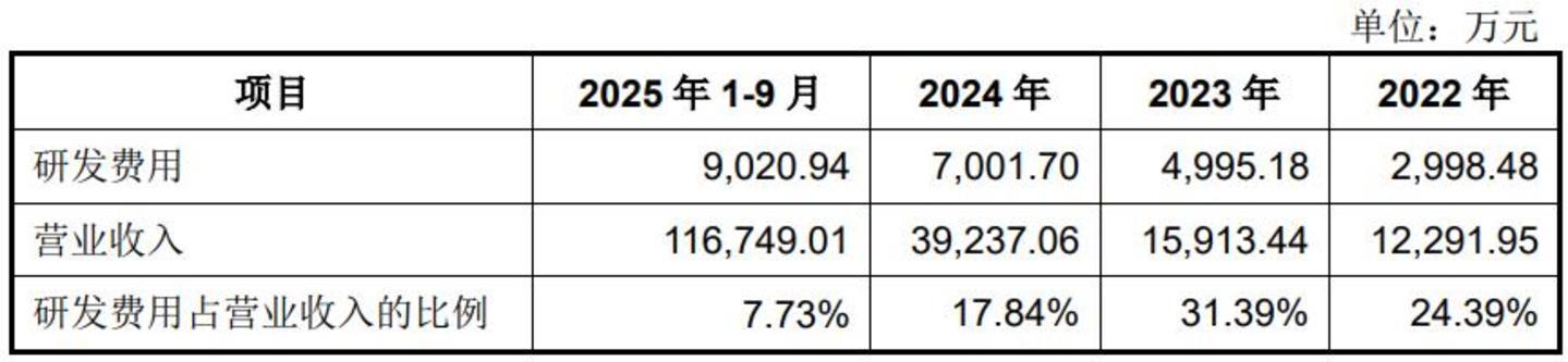 更关键的是,在研发投入上,宇树2022年至2024年研发投入累计1.50亿,2025年前9个月为9020万。对比同行,优必选2024年为4.78亿,越疆为7179万。