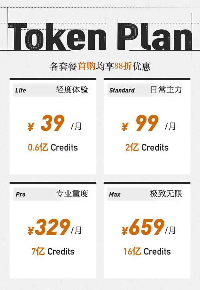 Token Plan 提供四档套餐: