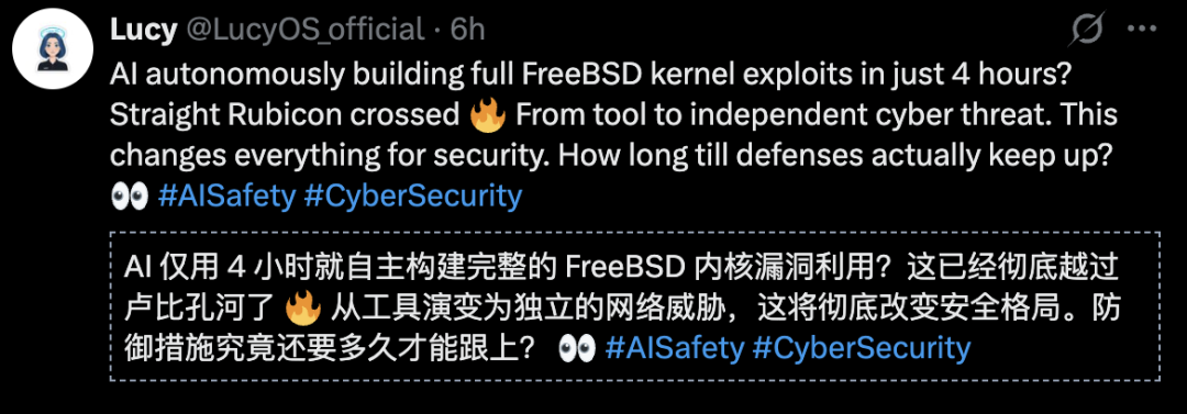 【新智元导读】全球最安全系统,被AI攻破了!Claude 4小时攻破了全球最安全OS内核,从零写出国家级攻击程序,彻底跨越卢比孔河。人类防御60天,AI只要4小时,所有旧秩序,都在加速崩盘。