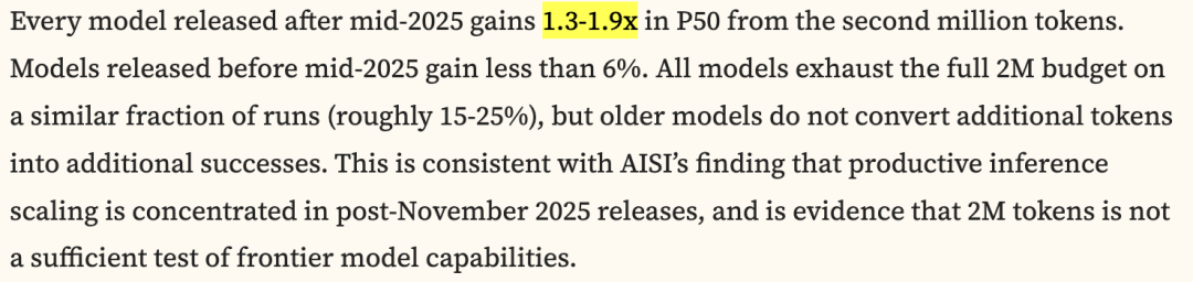 2M token严重低估真实能力,后2025模型在1M-2M token间P50提升1.3-1.9倍!