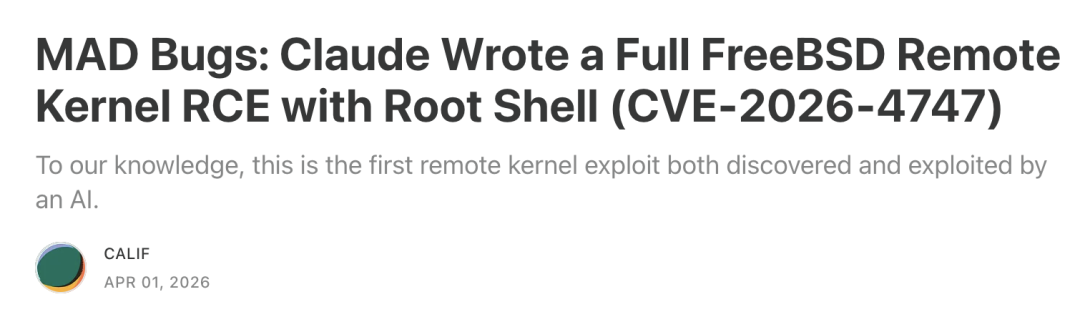也就是说,Claude就用一个公开CVE公告,4小时独立写出完整FreeBSD内核远程攻击链。