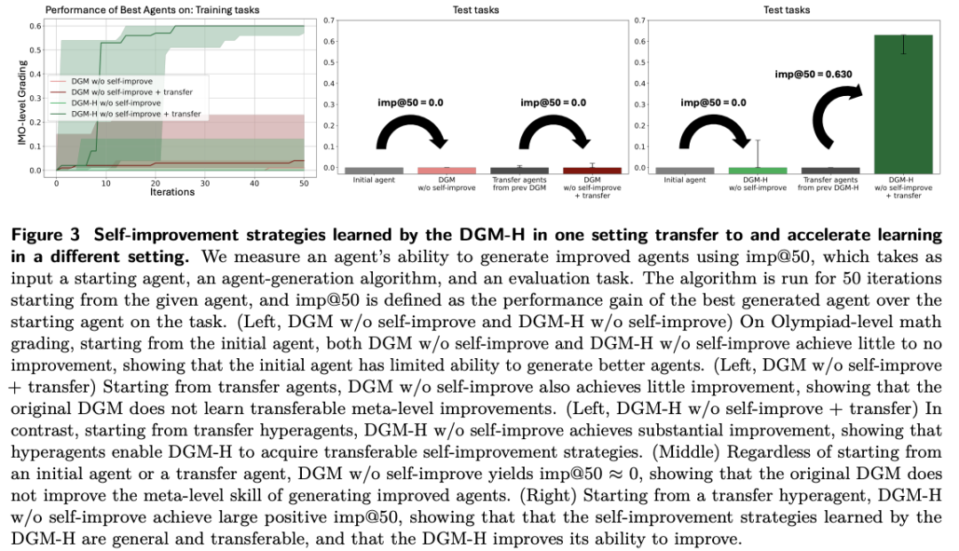 DGM-H在迭代中会自动长出performance tracking、persistent memory、evaluation analysis、compute-aware planning这些基础设施。