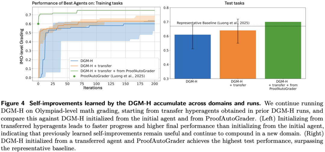 作者把在paper review和robotics任务中演化出来的hyperagents,转移到Olympiad-level math grading。