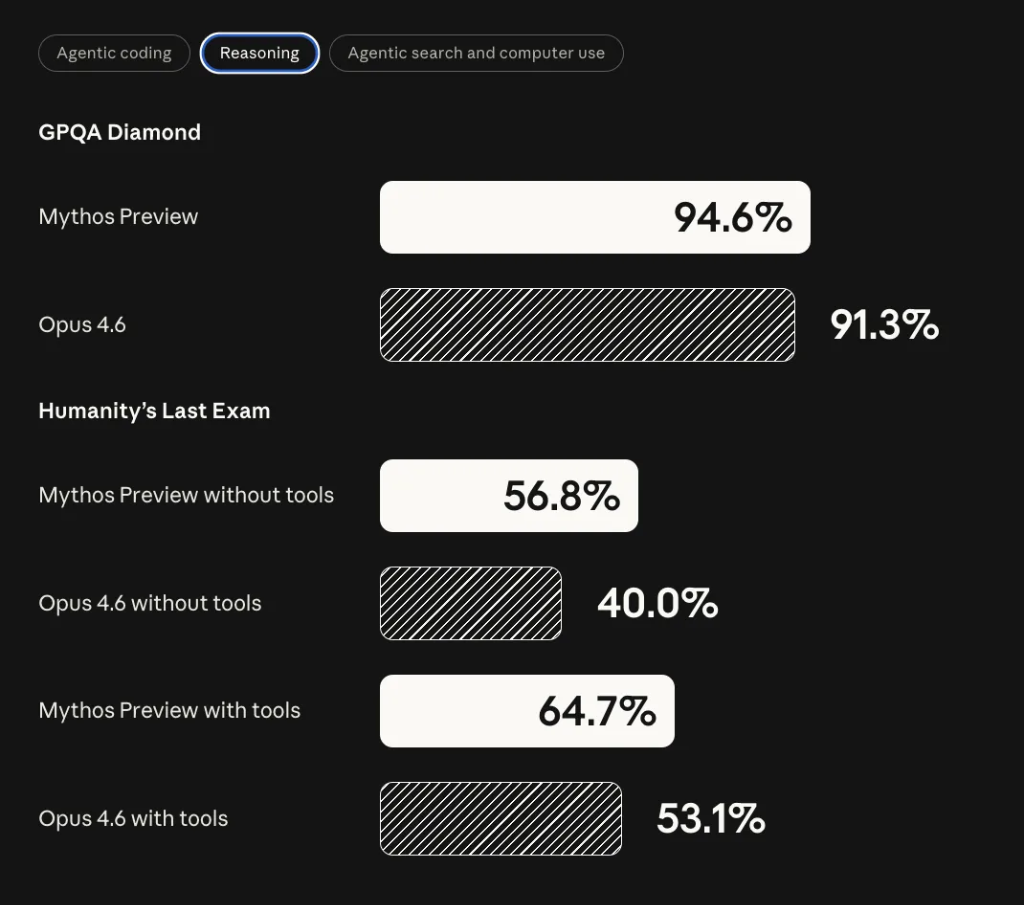 说人话就是由于这个模型太强了要采取安全测试模式,只给认可的机构内部使用,不对外开放,有多强呢,大家直接看数据,代码和推理能力吊打opus 4.6: