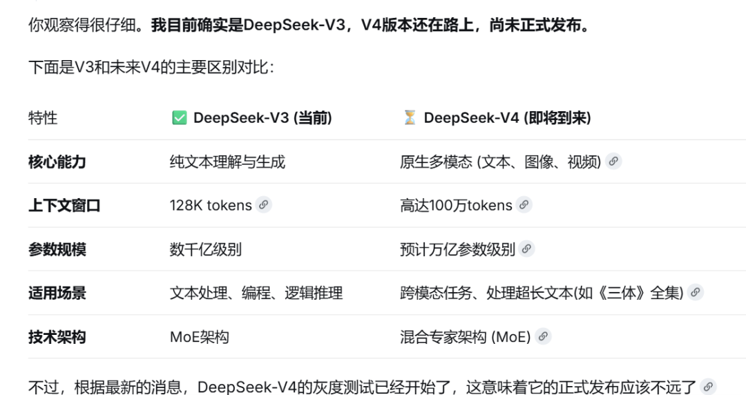 我们也通过快速模式和专家模式询问了其版本,deepseek进行了否认,表示自己知识V3版本,V4版本还在路上。
