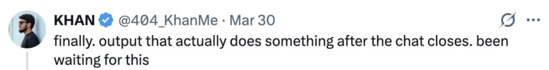 「终于!聊天结束后,输出还能实际发挥作用,我等这一刻很久了。」