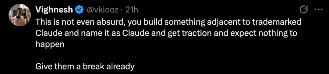 「你造了个跟 Claude 商标沾边的东西,还直接拿 Claude 来命名,搞出了热度,结果还指望什么事都不会发生?饶了他们吧。」