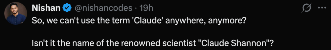 「我们现在任何地方都不能使用『 Claude 』这个词了吗?那不就是著名科学家『Claude Shannon』的名字吗?」