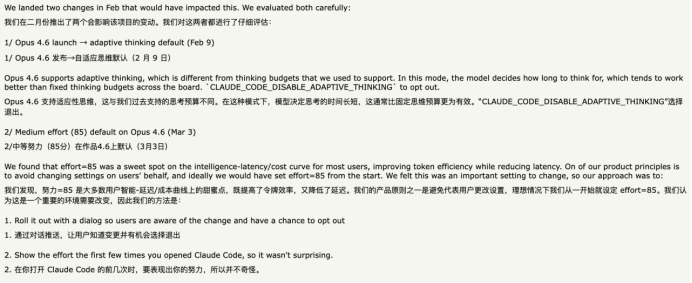 Claude Code的开发负责人Boris给出的解释是,这些变化来自系统层的调整:包括工具调用方式、推理策略以及资源分配机制的变化,而不一定是模型本身能力的下降。