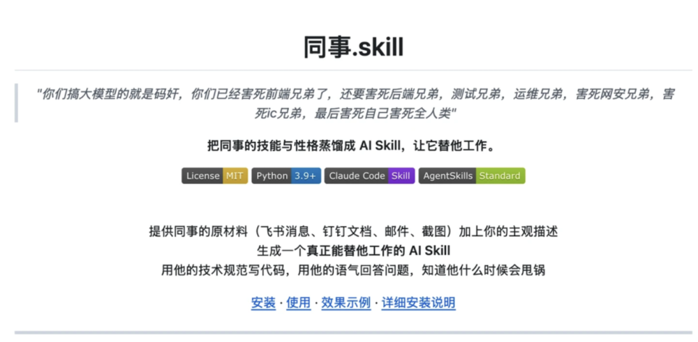 比如现在最为热门的GitHub话题:蒸馏你的“同事skill”
