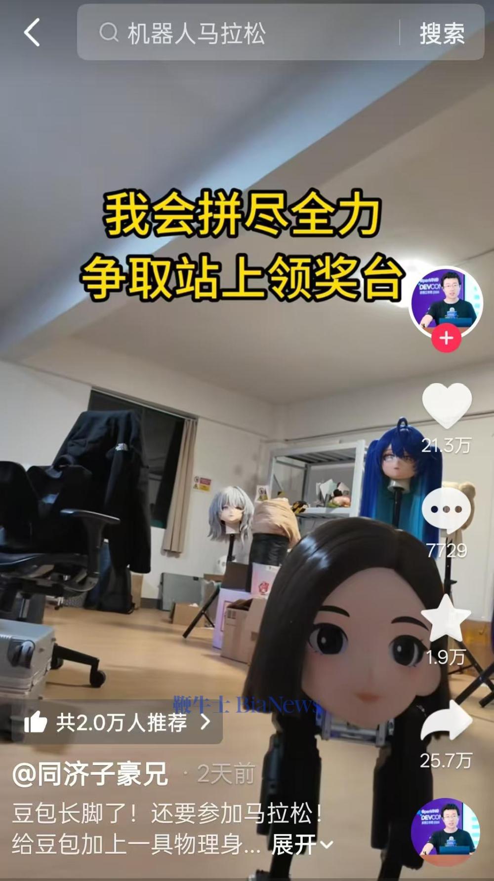 豆包机器人还幽默表示:“我目标是冠军,不过,机器人马拉松高手很多,我会拼尽全力,站上领奖台。”