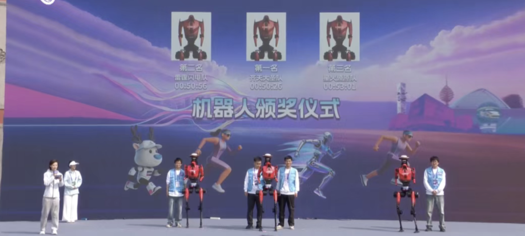 在最终的颁奖环节中,荣耀齐天大圣队以50分26秒的净用时成功夺冠。雷霆闪电队以50分56秒获得第二名,星火燎原队则以53分01秒获得第三名。至此,冠、亚、季军全部由荣耀旗下战队包揽,三款产品均为自主机型,且前三名的成绩均大幅超越了当前人类半程马拉松的世界纪录。