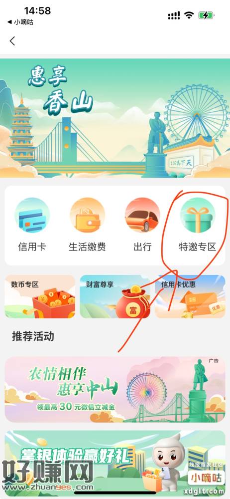 农行10元vx红包【农业银行中山分行】二季度特邀活动来啦,最低赢5元。请点击: https://go.abchina.com/k/8GX 进入特邀专区-农情掌银爱心接力参与,仅限短信邀约参与,特邀专区的三个活动都可以做,分别是2+3+5元共10元