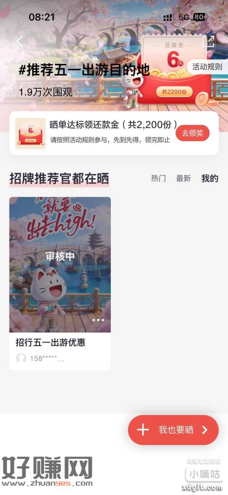 招行狺佣咔52亓毛!掌上生活App搜晒五一出游有15张300-2立减䋮(分三个月)小红书晒单三个6+8+8还歀䋮❗️不需要自己傻傻发笔记在找人互赞什么的,去小红书找符合要求的并且点赞+收藏大于20的笔记,复制填到掌上生活里面去,加上链接,一般第二天审核通过就能领还歀䋮了,有招行狺佣咔的去!