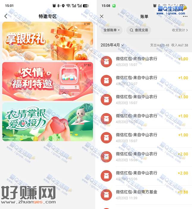 农行app-城市专区-右上角切换到【中山】-【惠享香山】点进去-【特邀专区】点进去 里面的三个活动都去参与