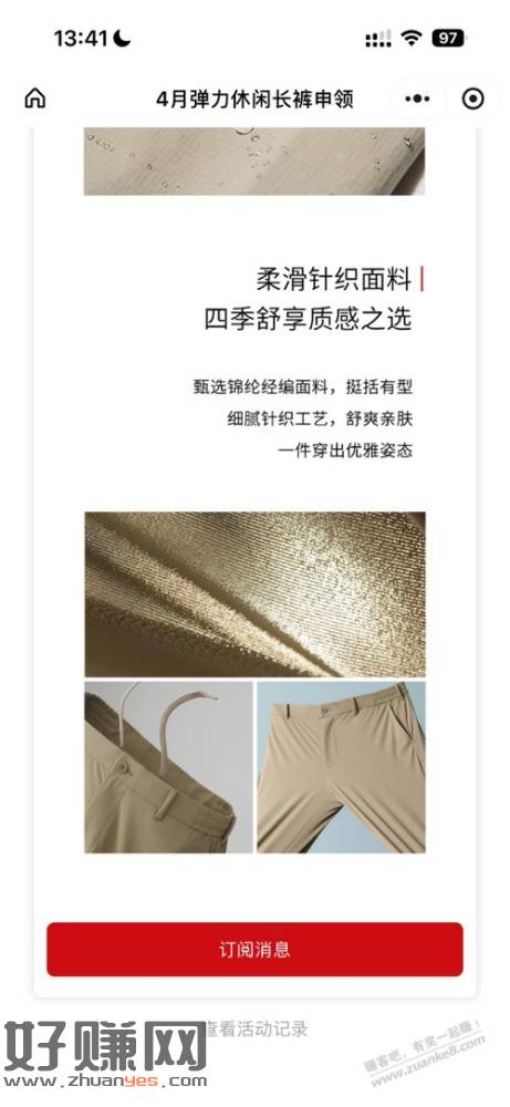 选择商品:4月24日至5月3日 活动开奖:5月4日 试穿评价:5月11日至5月17日 截止至5月3日 中了到线下门店自取 为了不影响下次中奖 需要写试用报告 #小程序://优衣库会员俱乐部/M7BSy7yg6j7wdls