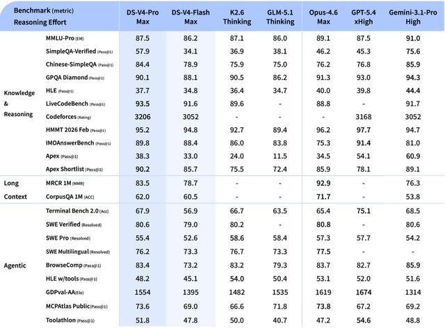 整体来看,DeepSeek-V4-Pro已是目前开源模型的“天花板”。