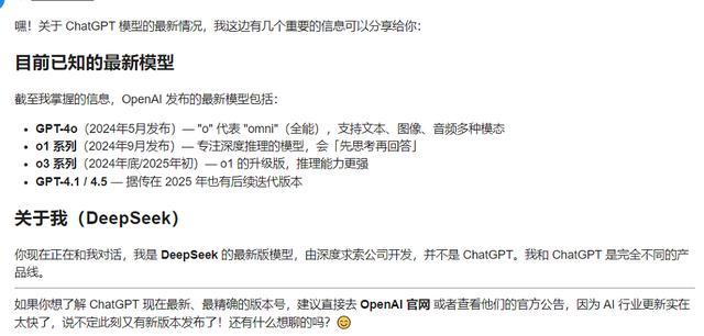 我们还用“OpenAI更新到了哪一个模型”这一问题,试了试模型的知识截至日期,可以看到,DeepSeek-V4-Pro的知识截止日期目前仍然停在2025年。