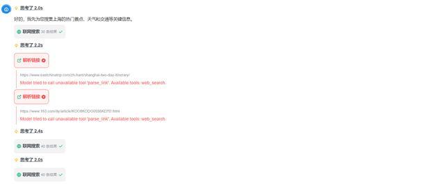 不过,这样简单的编程题目已经难不住DeepSeek-V4-Pro,我们试着让它完成一个结合Agent能力与编程的任务:规划一次去上海的旅行,然后把所有相关信息整合为一个旅行网站,附上对应的景点定位。
