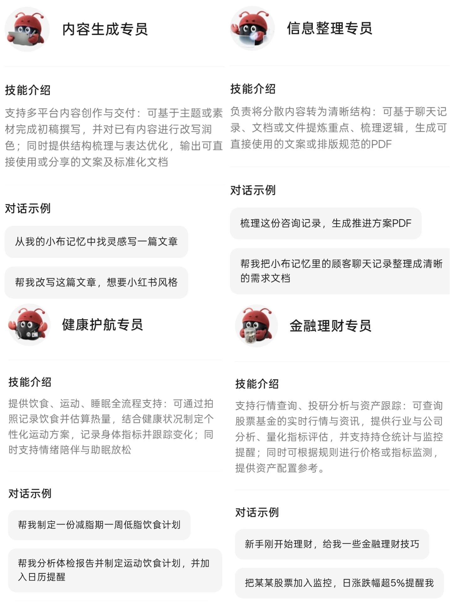 IT之家附陈希分享的小布 Claw 功能页面如下: