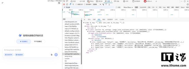 IT之家使用浏览器 F12 控制台测试发现,DeepSeek 的网络响应内容中出现了“识图模式”的相关内容: