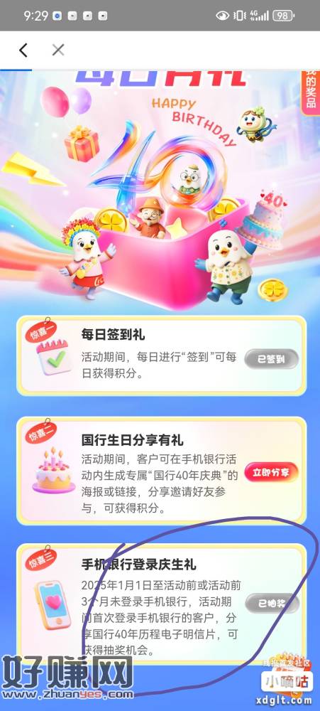 厦门国际银行,我的,活动中心。四十周年庆典。9立减+一次抽奖