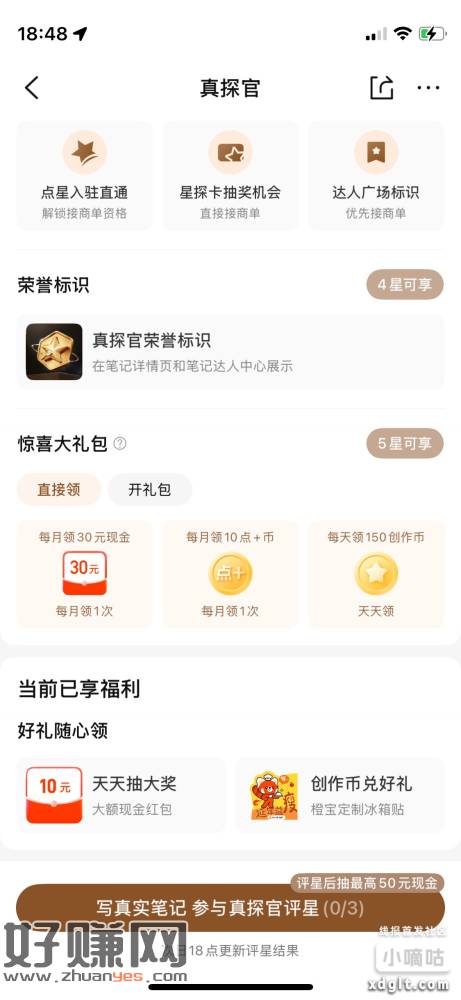 大众点评真探官抽奖笔记达人中心,有入口的可以去试试我两个号都中了,不知道是不是必中抽中后面就不会再中了去小红书搬笔记,完成可以额外抽奖10的笔记,然后抽发三篇过了真探官明天抽50明天来汇报