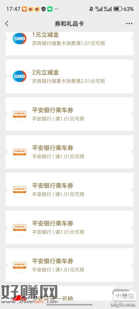 平安银行会员权益,我是二级,刷三笔满18.8的流水,可以领五张一元乘车劵,公交地铁都能用,外加两块钱立减金 。