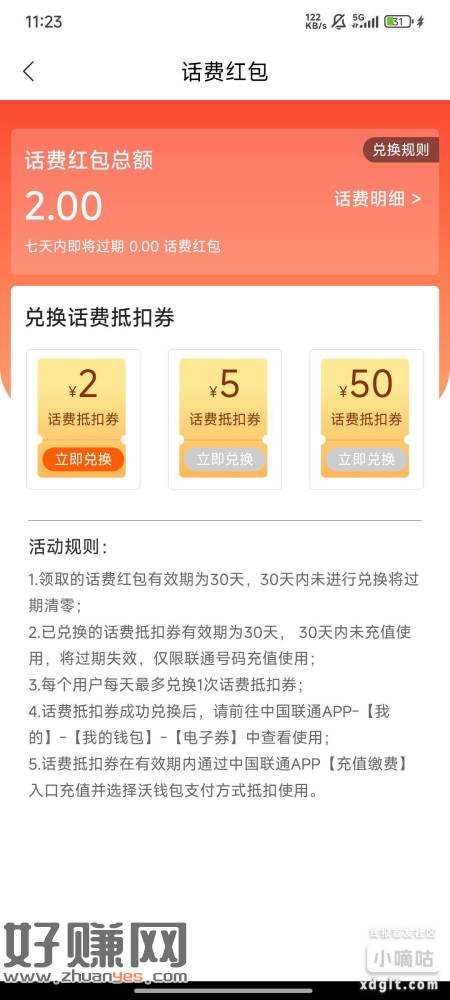 中奖之后点话费红包 手动兑换 联通APP充话费 沃支付减