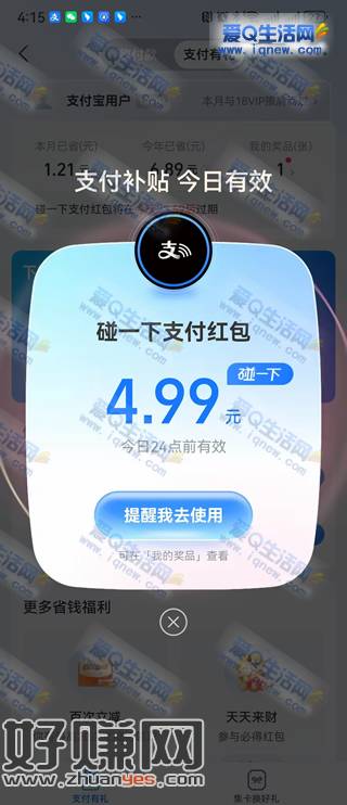 亲测4.99元碰一下红包 支付宝支付有礼领红包