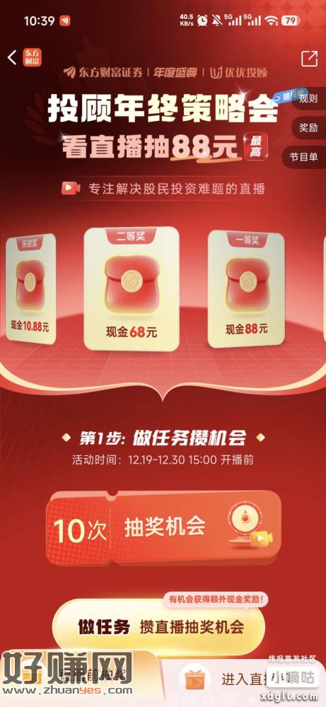 东方财富证券新活动,做任务攒抽奖机会,要等最后开播抽